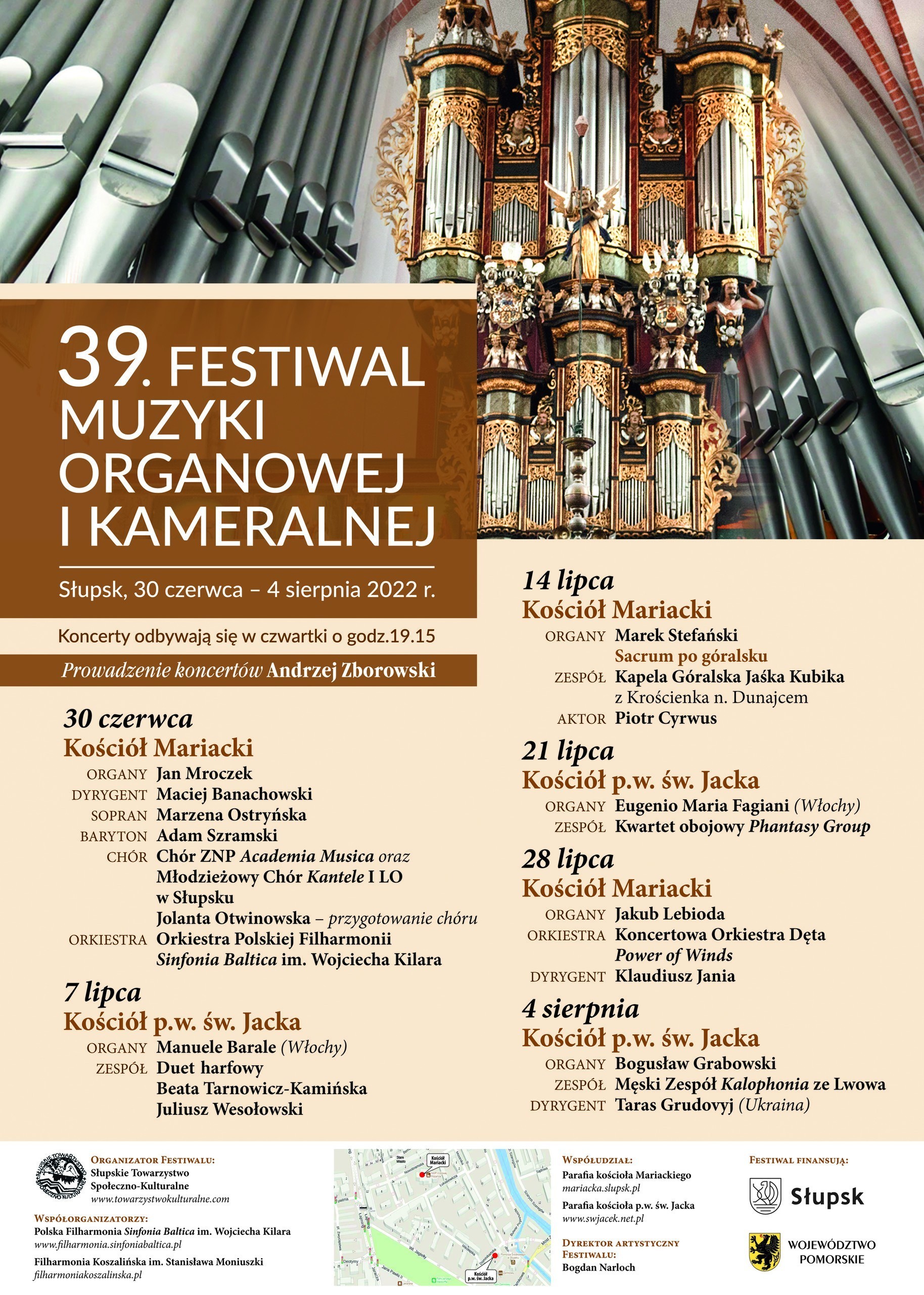 Poniżej znajdą Państwo program 39. FESTIWALU MUZYKI ORGANOWEJ I KAMERALNEJ (od 30 czerwca do 4 sierpnia 2022r.)
