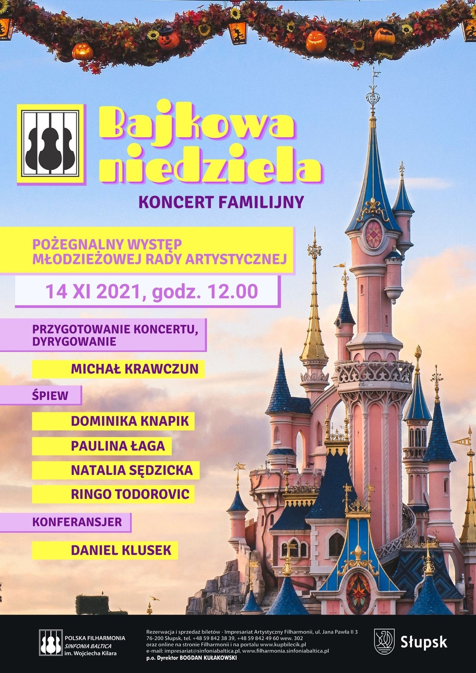 14 listopada 2021 roku o godzinie 12.00 zapraszamy do Filharmonii na koncert familijny „Bajkowa niedziela”! Będzie to pożegnalny występ Młodzieżowej Rady Artystycznej, współpracującej z Polską Filharmonią Sinfonia Baltica im. Wojciecha Kilara od grudnia 2019 roku. Młodzi artyści przygotowali program wypełniony najpopularniejszymi melodiami z filmów i bajek, które z chęcią nucą zarówno starsi, jak i młodsi miłośnicy muzyki. Usłyszeć będzie można takie utwory, jak „Hakuna Matata”, „Mam tę moc” czy „Kolorowy wiatr”. Orkiestrę poprowadzi przewodniczący Młodzieżowej Rady Artystycznej Michał Krawczun, w role śpiewających księżniczek wcielą się Paulina Łaga, Dominika Knapik i Natalia Sędzicka, a towarzyszyć im będzie książę z bajki Ringo Todorovic. Koncert poprowadzi niezawodny Daniel Klusek.