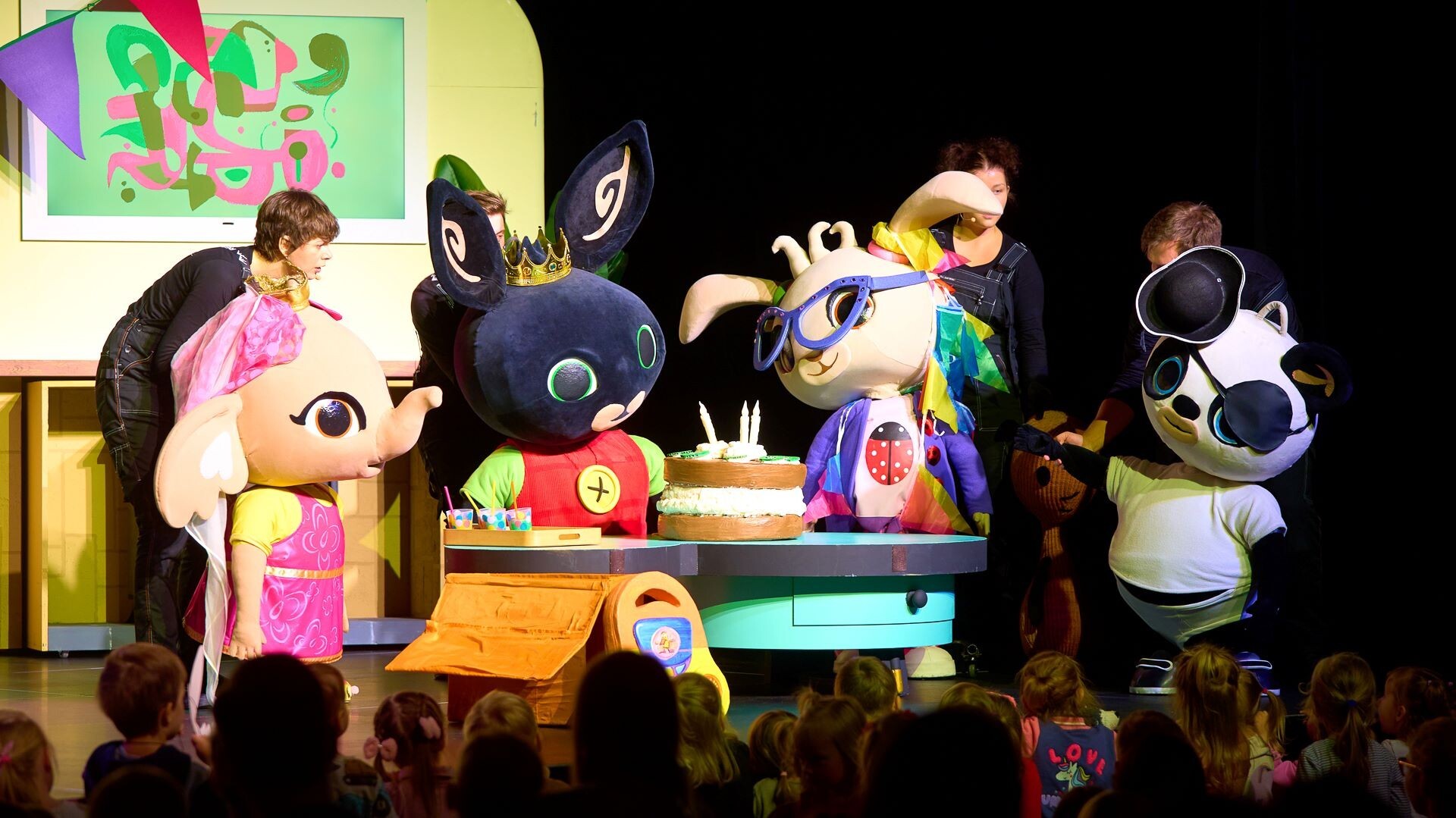 Spektakl „Wielkie Urodziny” to międzynarodowa produkcja w języku polskim. Przedstawienie zostało zrealizowane pod czujnym okiem twórców animacji, z myślą o najmłodszych widzach i doskonale dostosowane do ich percepcji. Na scenie pojawiają się: Bing, Sula, Coco, Pando i Flop w formie przepięknych, wielkoformatowych lalek, które na żywo animowane są przez utalentowanych polskich aktorów. Bing Na Żywo to wielka teatralna przygoda! Wspaniała scenografia, wesołe piosenki i duża dawka zabawy i interakcji z małymi widzami. Dla najmłodszych to wyjątkowa okazja do zobaczenia na żywo Binga i jego przyjaciół!