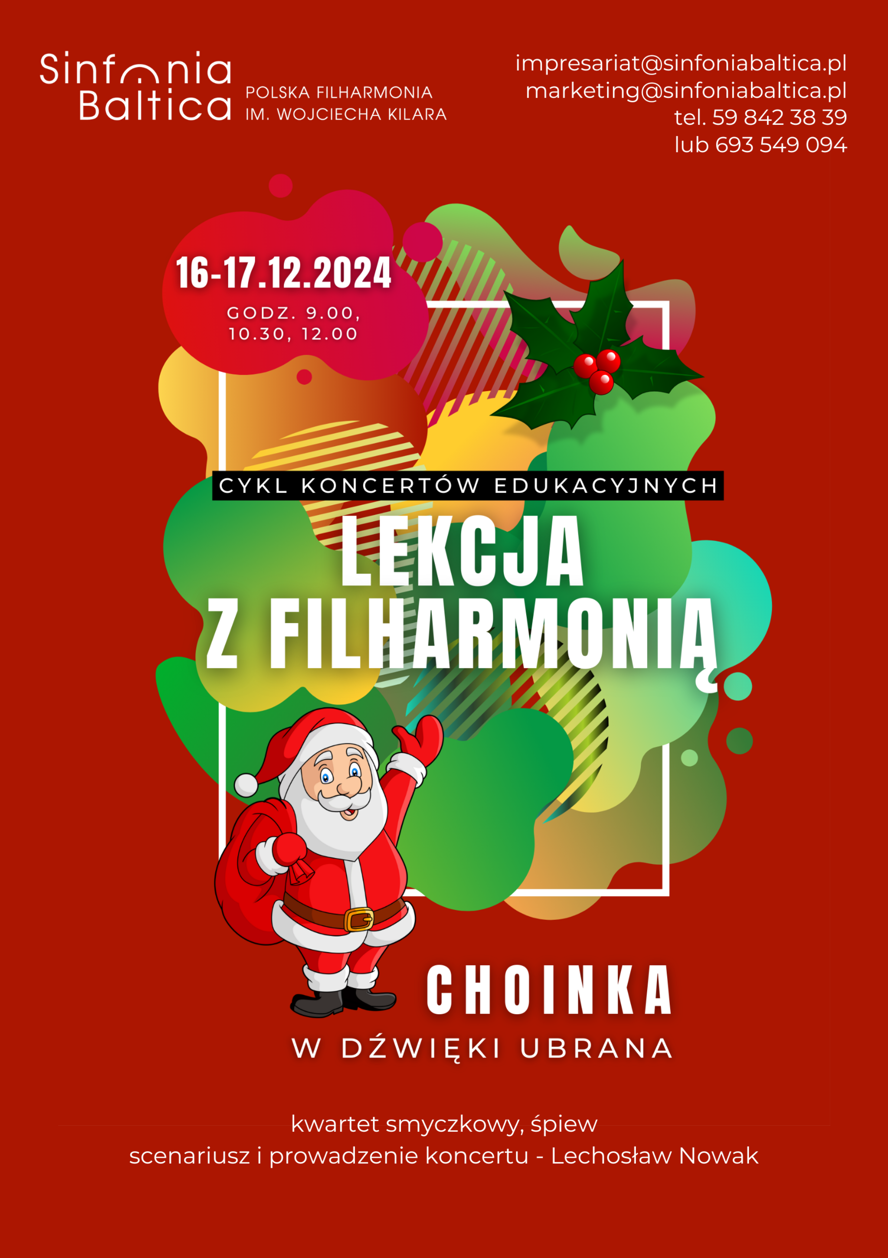 Nastrojeni na świąteczny czas ubierzemy choinkę w dźwięki kolęd, pastorałek i świątecznych piosenek.  Zajrzymy także do filharmonicznej biblioteki w poszukiwaniu śladów świąt i świątecznej magii w klasycznych arcydziełach.