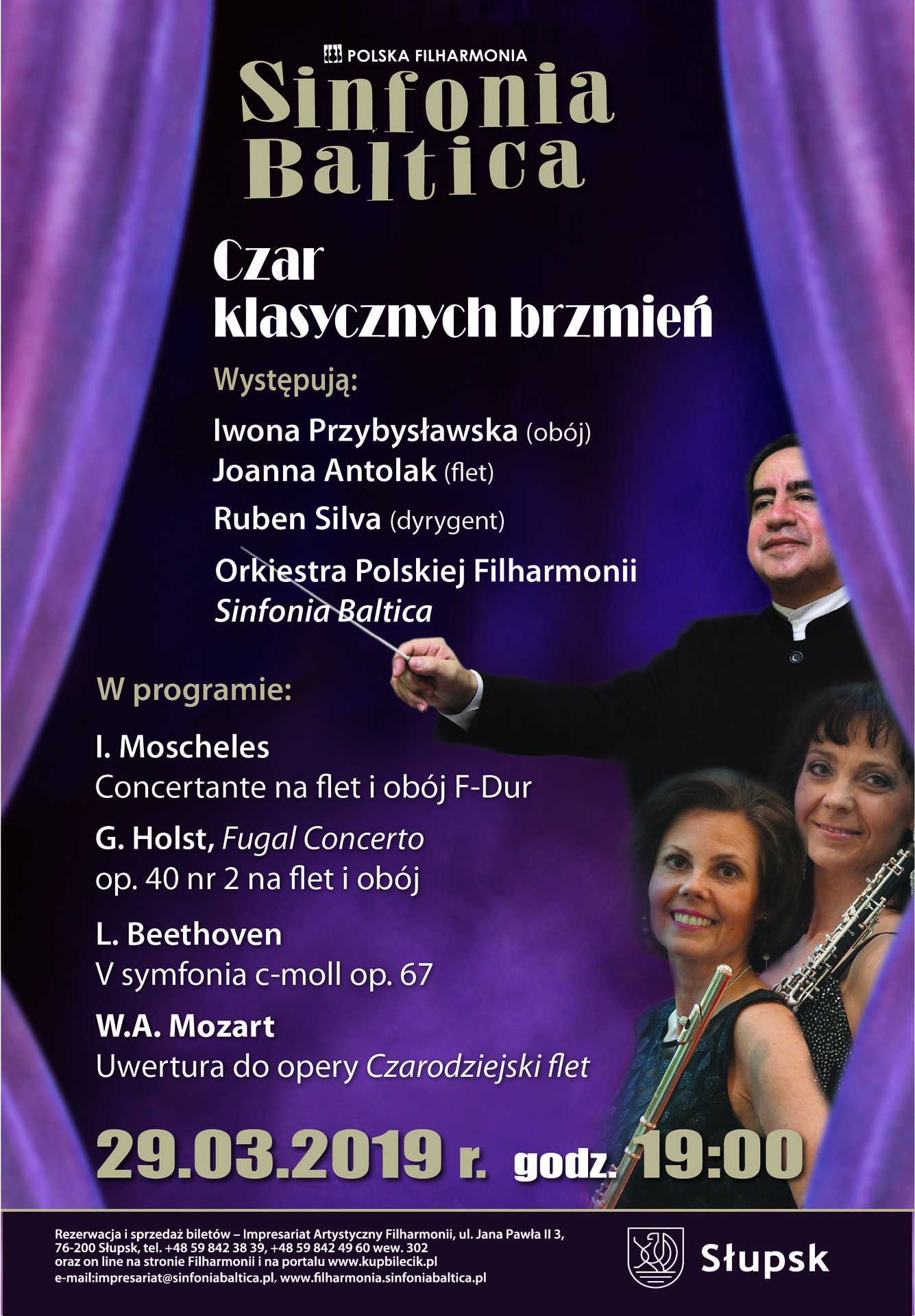 V Symfonia L. Beethovena, znana jako “Symfonia Losu” to bez wątpienia najbardziej znana symfonia tego kompozytora. Te jakże popularne dźwięki towarzyszyć będą baśniowej podróży po świecie muzyki. W programie znajdą się również: Concertante na flet, obój i orkiestrę F-dur I. Moschelesa i Uwertura z opery Czarodziejski flet W.A. Mozarta. Orkiestrę Sinfonia Baltica poprowadzi Ruben Silva. Solistkami koncertu będą: Iwona Przybysławska (obój) oraz Joanna Antolak - Bielak (flet).