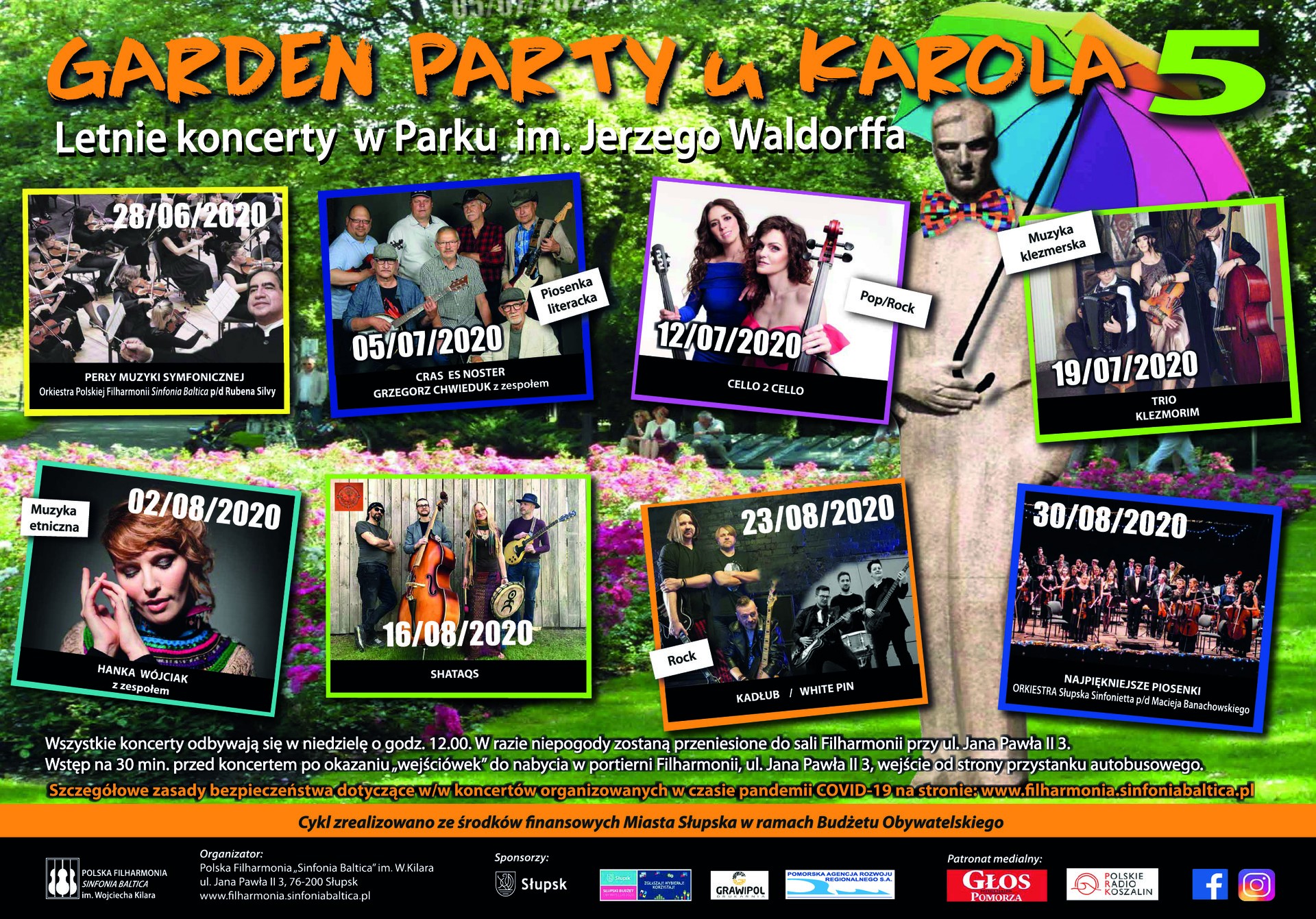 Prosimy o zapoznanie się z procedurami bezpieczeństwa dla uczestników koncertów plenerowych pn. Garden Party u Karola w Parku im. Jerzego Waldorffa w Słupsku w trakcie epidemii wirusa SARS-CoV-2 w Polsce w galerii poniżej.