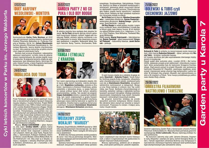 Poniżej znajdą Państwo PROGRAM GARDEN PARTY U KAROLA 7 (od 03 lipca do 28 sierpnia 2022)