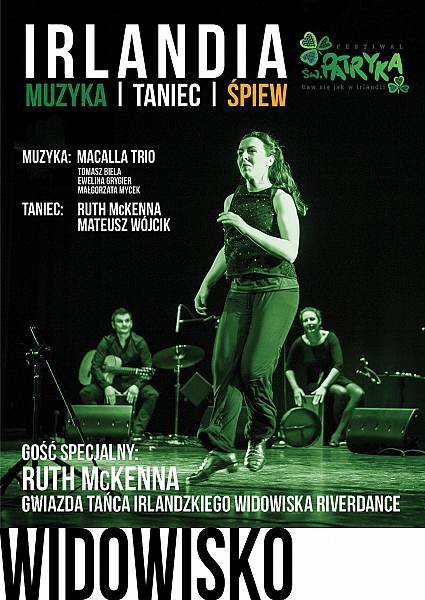 Irlandia, kraj pogodnych, otwartych ludzi, bogatej kultury i wspaniałych krajobrazów. Widowisko IRLANDIA to barwna podróż przez kulturę muzyczną i taneczną zielonej wyspy, od zamierzchłej tradycji po współczesną tradycje tworzoną przez młode pokolenie Irlandczyków. Najpopularniejsza muzyka i taniec ludowy świata w mistrzowskim wykonaniu sprawi, że utrzymanie stóp w miejscu będzie nie lada wyzwaniem! Gościem specjalnym będzie Ruth McKenna – gwiazda tańca irlandzkiego, tancerka widowiska Riverdance. Towarzyszyć jej będą Mateusz Wójcik - twórca widowiska "Usłyszeć Taniec" oraz irlandzki zespół Macalla Trio.