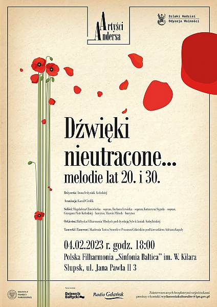 Podczas koncertu artyści przypomną twórczość legendarnych kompozytorów i autorów tekstów – Jerzego Petersburskiego, Mariana Hemara i Henryka Warsa oraz przywołają wspomnienia związane ze starym kinem i piosenkami z lat 20. i 30. ubiegłego wieku. Artyści w armii generała Andersa towarzyszyli żołnierzom, razem z nimi dzielili trudny los na obczyźnie, ale byli też wizytówką Polski, ambasadorami polskiej sprawy, a generał Anders wykorzystywał ich występy przy rozmowach o losach naszego kraju.