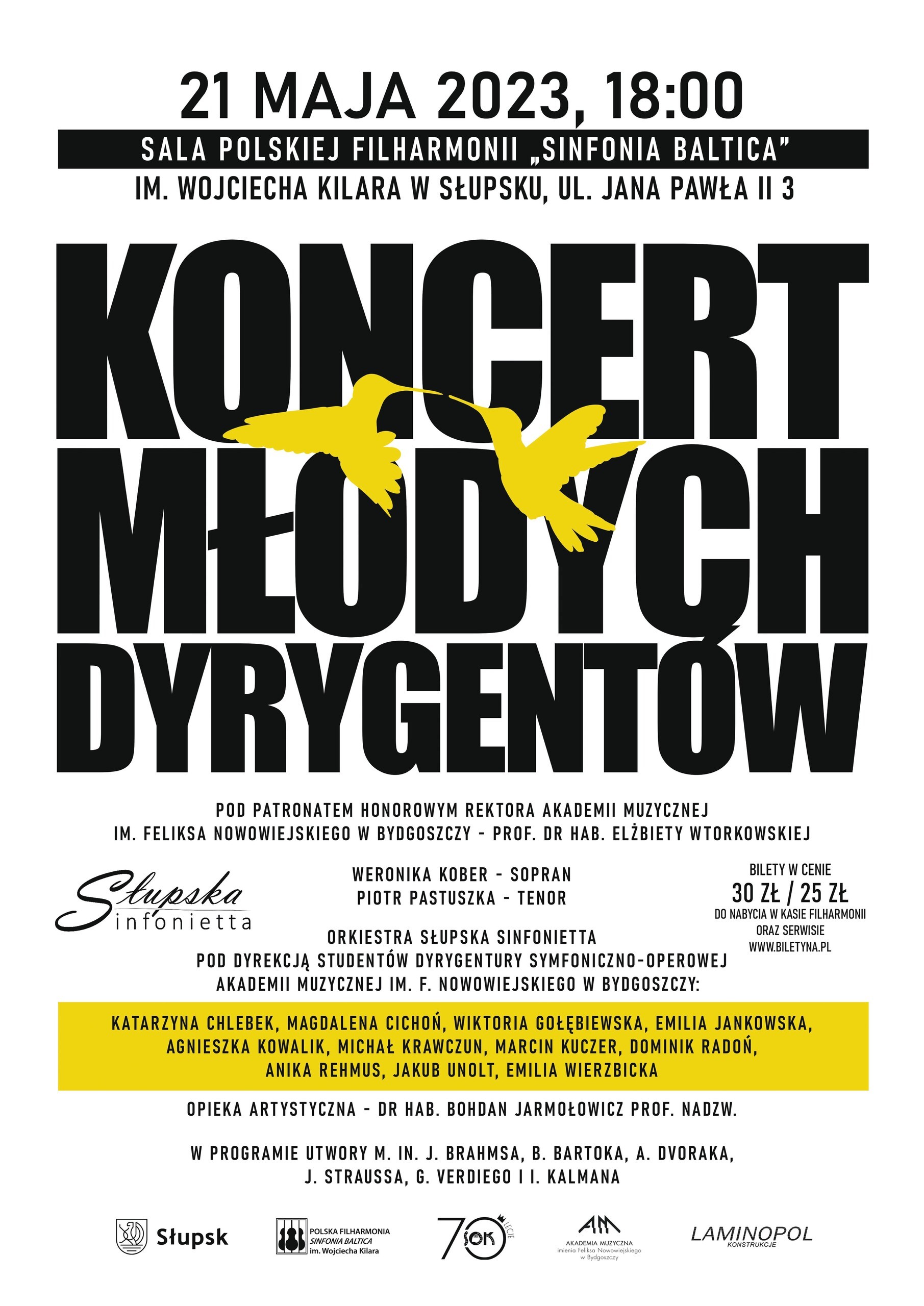 Orkiestrę poprowadzi aż jedenastu dyrygentów – studentów Wydziału Dyrygentury, Jazzu i Edukacji Muzycznej bydgoskiej akademii muzycznej. Dla niektórych będzie to sceniczny debiut, a dla innych okazja do zaprezentowania swoich umiejętności słupskiej publiczności.