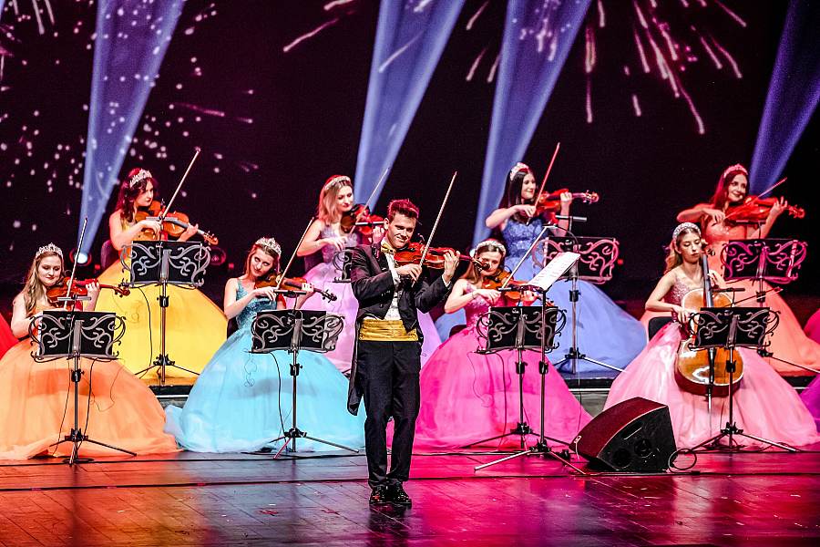 Zabrzmią największe, ponadczasowe i wiecznie bliskie sercom melomanów przeboje króla walca - Johanna Straussa, nie zabraknie także popisowych arii z najsłynniejszych operetek "Zemsta nietoperza", "Baron cygański", "Wesoła wdówka", "Księżniczka czardasza" oraz "Kraina uśmiechu". Publiczność usłyszy m.in.: Walc "Nad pięknym modrym Dunajem", Arię Barinkaya "Wielka sława to żart", Duet wszech czasów "Usta milczą dusza śpiewa", polkę "Tritsch- Tratsch" oraz słynny "Marsz Radeckiego". W klimat magicznych bali wiedeńskich wprawią Państwa olśniewające kreacje artystów, przepiękne suknie balowe solistek oraz Orkiestry Księżniczek Tomczyk Art wykonującej to niezwykłe widowisko.