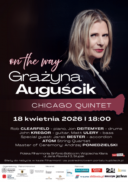 Koncert Grażyny Auguścik to coś więcej niż jazzowy wieczór – to spotkanie kultur, estetyk i emocji. Artystka, pochodząca ze Słupska od lat związana ze sceną amerykańską, łączy jazz z inspiracjami muzyką amerykanską, polską, klasyczną i muzyką świata, tworząc brzmienie liryczne, nowoczesne i pełne improwizacyjnej swobody. Jej charakterystyczny głos prowadzi słuchaczy w muzyczną podróż – intymną, poruszającą i często nieprzewidywalną.