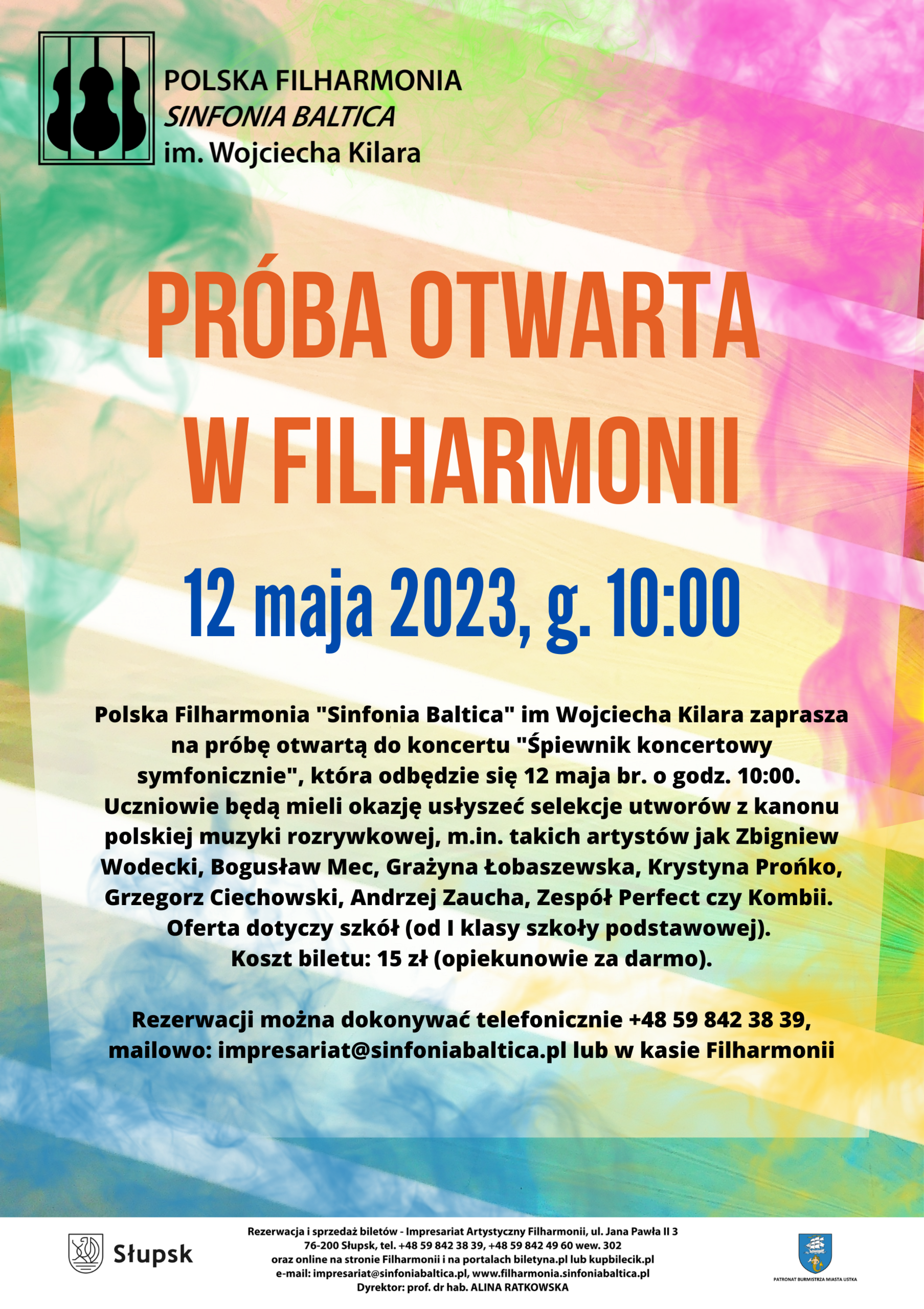 Rezerwacji można dokonywać telefonicznie +48 59 842 38 39, mailowo: impresariat@sinfoniabaltica.pl lub w kasie Filharmonii