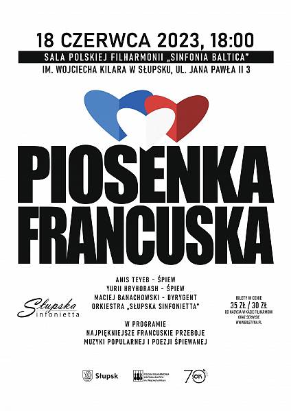 Słupska Sinfonietta zakończy sezon artystyczny w sposób niezwykle romantyczny. Usłyszymy bowiem najpiękniejsze francuskie piosenki w wykonaniu dwóch znakomitych wokalistów. Koncert o iście wakacyjnym charakterze z pewnością dostarczy Państwu wielu wzruszeń i pozytywnych emocji!