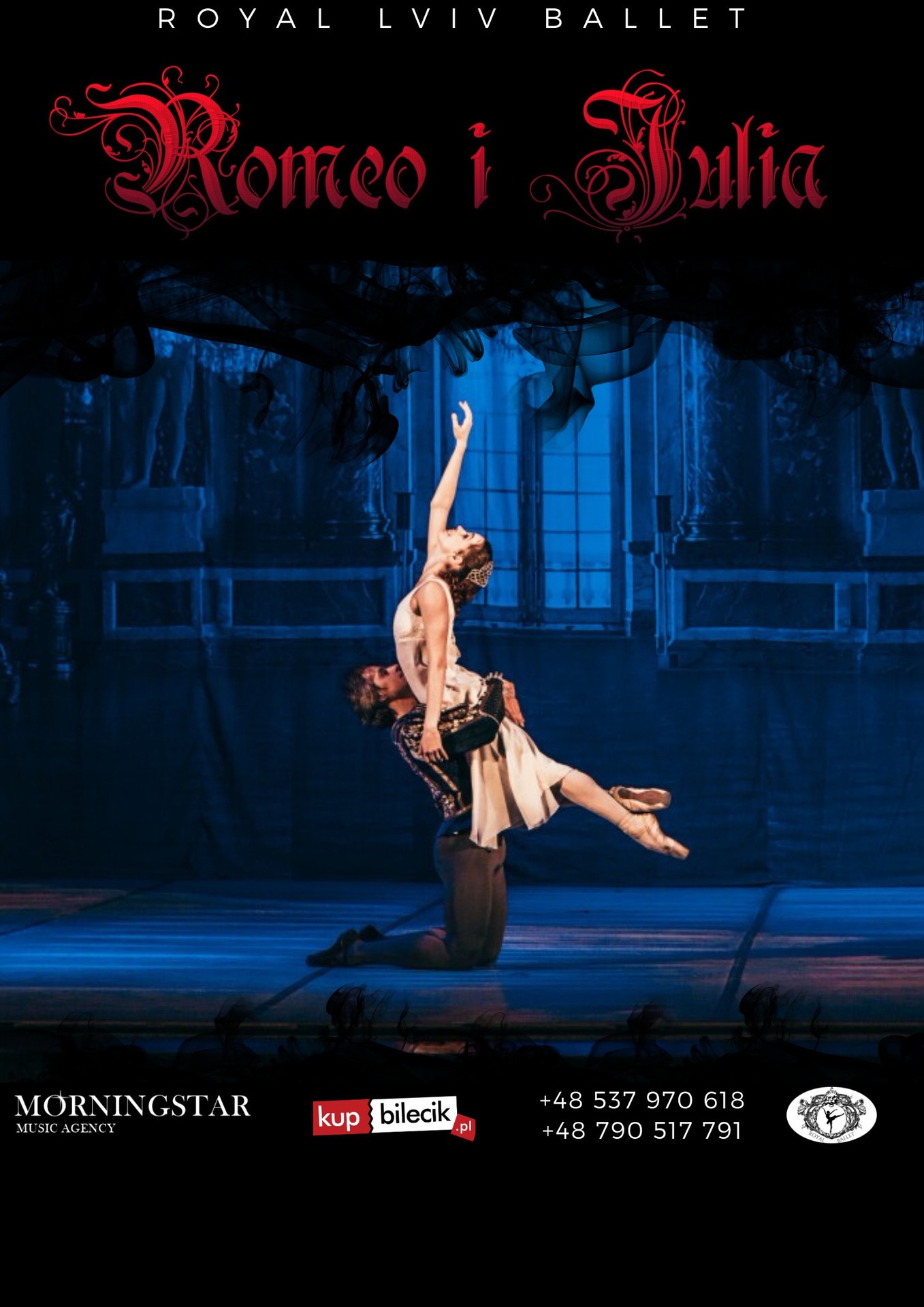 Na placu miejskim w Weronie dochodzi do walki sług z dwóch wrogich sobie domów: Kapuletów i Montekich. Benwolio, siostrzeniec pana Monteki i przyjaciel Romea, powstrzymuje walczących. Na szczęście interweniuje książę Eskalus, który pod groźbą kary śmierci rozkazuje zaprzestania ciągłego zakłócania spokoju w mieście. Kapulet planuje wydać swą córkę Julię za Parysa, krewnego księcia Eskalusa. Tego wieczoru wydaje bal, na którym Julia i Parys mają się poznać. O balu dowiadują się przypadkiem Romeo i Benwolio. Ma tam być obecna Rozalina, dlatego Romeo decyduje się pójść do domu Kapuleta. Na balu Romeo poznaje Julię, w której się zakochuje. Nocą Romeo zakrada się do ogrodu Kapuletów. Julia rozpacza, że waśń pomiędzy ich rodzicami jest przeszkodą dla ich miłości. Oboje są gotowi wyrzec się nazwiska, własnego rodu, byle tylko być ze sobą. Wyznają sobie miłość i postanawiają wziąć potajemnie ślub. W tym celu Romeo udaje się do ojca Laurentego, który wyraża zgodę, licząc, że związek tych dwojga pogodzi zwaśnione rody. Niestety w kolejnej awanturze mszcząc śmierć Merkucja, Romeo zabija Tybalta i zostaje wygnany z Werony. Aby być blisko ukochanej, udaje się do ojca Laurentego. Zakonnik postanawia mu pomóc, radzi wyjechać do Mantui i przeczekać złe chwile. Romeo tak czyni, w nocy jeszcze spotyka się z Julią. Zakonnik pomaga dziewczynie, daje jej płyn, który po wypiciu wywołuje letarg podobny do śmierci, a następnie układa plan: Julia zostanie pochowana, wtedy też przybędzie powiadomiony o wszystkim Romeo i zabierze ją z Werony. W przeddzień ślubu Julia wypija napój. Rankiem rodzina Kapuletów odkrywa, że dziewczyna umarła. Julia zostaje pochowana w rodzinnym grobowcu. Nic nie wiedzący o tym Romeo, do którego nie dotarł posłaniec, zabija się widząc ją martwą. Po obudzeniu się z letargu Julia przebija się sztyletem. Rody godzą się nad grobem swoich dzieci. Royal Lviv Ballet - zespół złożony z solistów rosyjskich(Maryjski, Bolshoi) i ukraińskich(Narodowy Lwowski, Narodowy Kijowski), szturmem zdobywa sceny baletowe całego świata i prestiżowe, międzynarodowe nagrody. Kierownictwo artystyczne zespołu sprawują dwie wspaniałe osobowości Victor Szczerbakovi - solista i choreograf Bolshoi Ballet - Honorowy Artysty Rosji oraz Narodowy Artysta Ukrainy prof. Olek Petryk solista Narodowego Lwowskiego Teatru Opery i Baletu im. Salomei Kruszelnickiej. Zachwycające szyte ręcznie kostiumy, choreografia, piękna scenografia a przede wszystkim perfekcja w wykonaniu sprawiają, każdy spektakl Royal Lviv Ballet jest niezapomnianym przeżyciem dla odbiorcy. Zespół złożony z najwybitniejszych artystów kontynuujących tradycje słynnej rosyjskiej szkoły baletowej czaruje publiczność wielu krajów Europy, Azji, Ameryki Północnej i Południowej