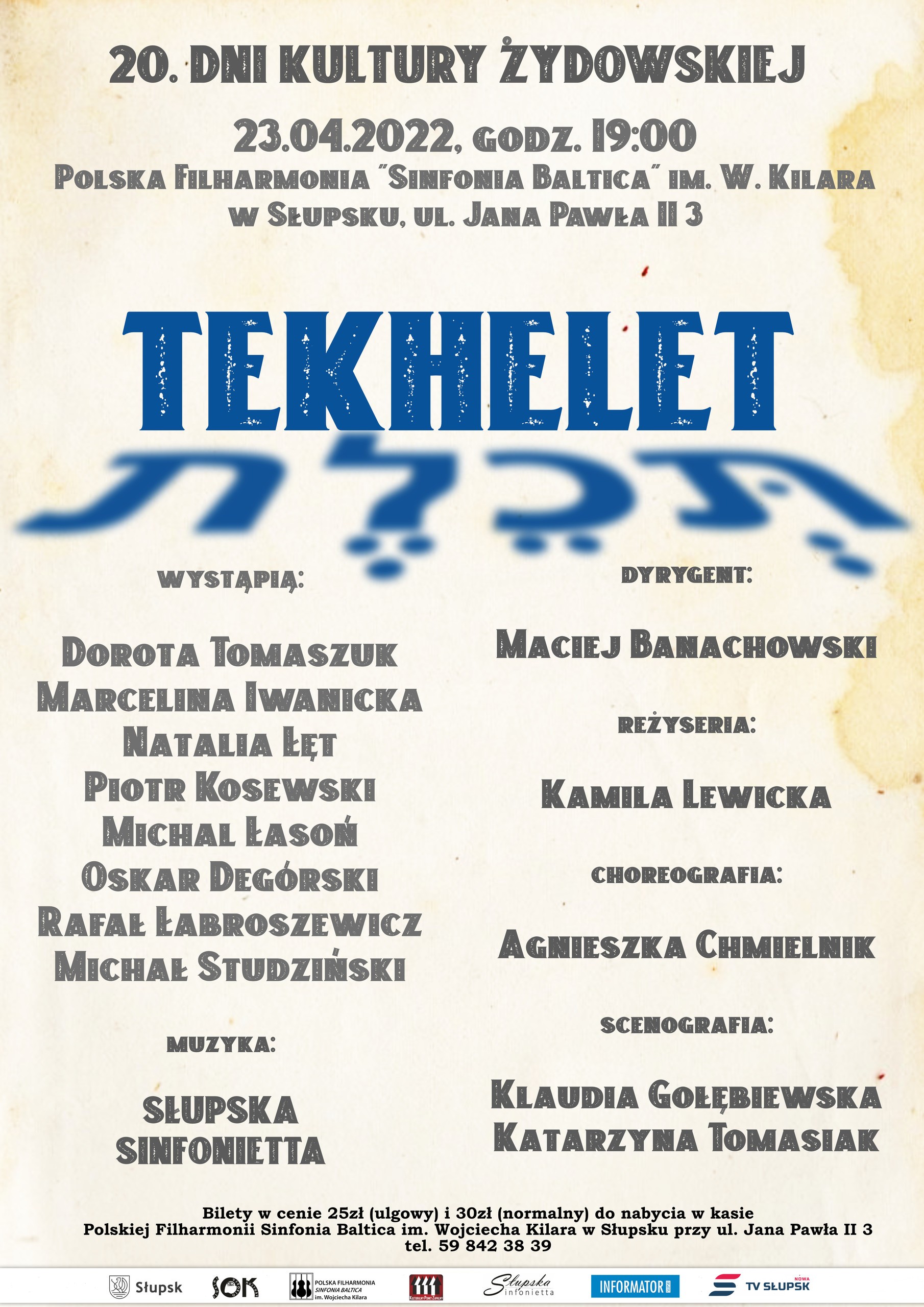 Słupski Ośrodek Kultury i Słupska Sinfonietta zapraszają na spektakl "TEKHELET", zrealizowany w ramach obchodów 20. Dni Kultury Żydowskiej.