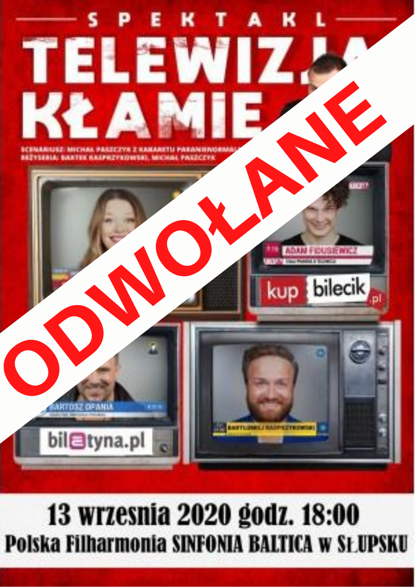 Szanowni Państwo! Spektakl kabaretowy "Telewizja Kłamie" jest ODWOŁANY.