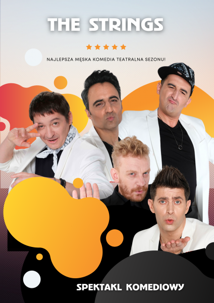 The Strings – przezabawny spektakl komediowy o przyjaźni, życiowych zakrętach i miłości do muzyki. Musisz to zobaczyć! Niebanalne żarty, moc przyjaźni, grupa 5 mężczyzn, którzy spotkali się będąc na życiowym zakręcie. W tle muzyka, która osładza ich perypetie. To krótki opis spektaklu autorstwa i reżyserii Macieja Kowalewskiego. „The Strings – pełna humoru i zwrotów akcji sztuka, która po prostu przywraca wiarę w marzenia oraz siłę przyjaźni. Kim są nasi bohaterowie? To Ernest, Kotlet i Manuel. Ernest rozpacza, ponieważ żona wyrzuciła go z mieszkania i z życia. Kotlet za dużo pije, a na dodatek został zwolniony z zespołu chippendales, który sam założył. Manuel właśnie wyleciał z hukiem z legendarnego zespołu Figi, który dziś koncertuje w muszli. Załamani panowie na zakręcie życiowym postanawiają wziąć sprawy w swoje ręce i zakładają zespół The Strings. Kto do nich dołączy? Jak potoczą się ich losy? O tym przekonacie się będąc na widowni. Od pierwszych minut spektaklu, będą płynąć łzy ze śmiechu, by następnie przeszły w łzy wzruszenia. Nasi bohaterowie przez całą sztukę na oczach widza, będą zmieniać swoje podejście do życia, priorytety, a przyjaźń stanie się dla nich czymś najważniejszym.