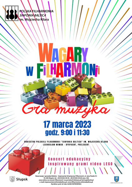 Inspiracją koncertu jest cykl przygodowych gier video LEGO. O samych klockach i ich popularności nie trzeba pisać gdyż są znane i uwielbiane przez dzieci na całym świecie od kilku pokoleń. Fabuła gier oparta jest na prawdziwych i wszystkim doskonale znanych bestsellerach światowego kina co dodatkowo zwiększa atrakcyjność naszego autorskiego, familijnego pomysłu. Seria zapoczątkowana w drugiej połowie 90 lat obejmuje już kilkanaście odsłon. A więc na ekranie oprócz wielu szalonych i ciekawie przez autorów zaanimowanych przygód, licznych elementów zręcznościowych, pojawia się cała galeria postaci oraz przepiękna filmowa muzyka. Klocki LEGO na scenie to prosty i skuteczny zabieg otwierający wyobraźnię młodego słuchacza, pozwalający szybciej i lepiej zrozumieć czym jest MUZYKA. Bawiąc się klockami na scenie pokazujemy jej poszczególne elementy i łączymy je w całe muzyczne utwory. Koncert to moment gdy fantastyczna, barwna muzyka o wielkiej wartości, będąca do tej pory tłem gry, a wcześniej filmu, wychodzi na plan pierwszy, natomiast głównym aktorem staje się orkiestra symfoniczna w dużej obsadzie.