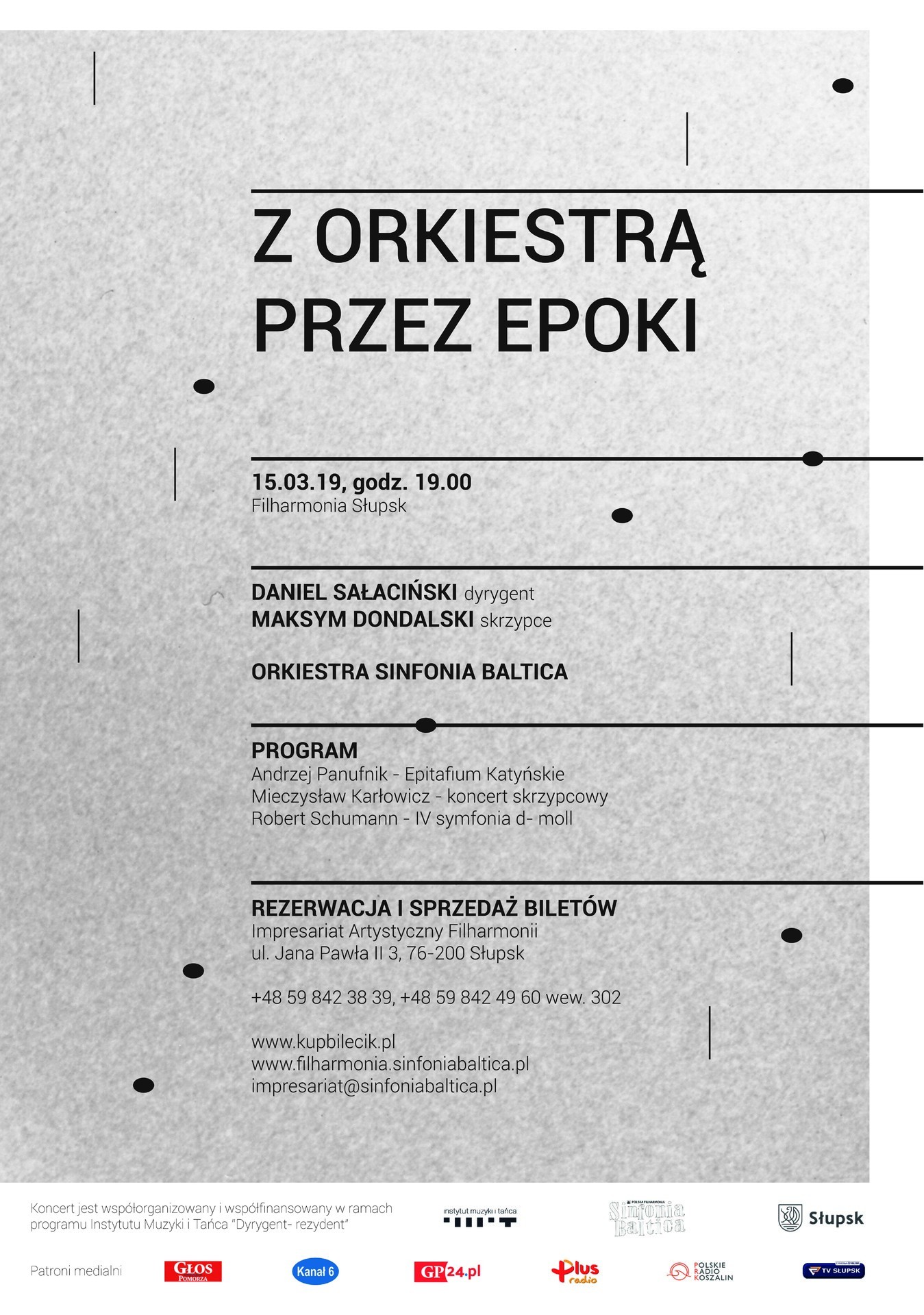Koncert współorganizowany i współfinansowany w ramach programu Instytutu Muzyki i Tańca „Dyrygent-rezydent”. Dyrygentem-rezydentem Polskiej Filharmonii „Sinfonia Baltica” w sezonie 2018/2019 jest Daniel Sałaciński.